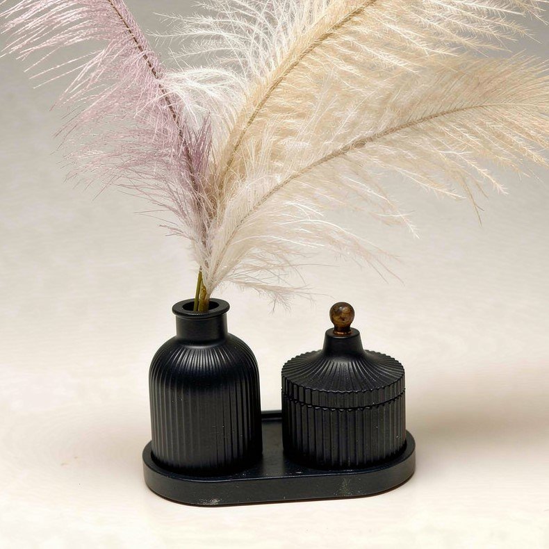 The Black Harmony Duo by Lunis Concrete Art brings a refined balance of texture and modern design to your home. Crafted from durable concrete with a sleek ribbed finish, this decor set features a minimalist black palette that pairs beautifully with soft pampas style stems. Its compact size makes it ideal for shelf styling, desk decor, or aesthetic room setups. A perfect choice for anyone looking to elevate their space with modern home decor, minimalist accents, and calming aesthetic vibes.