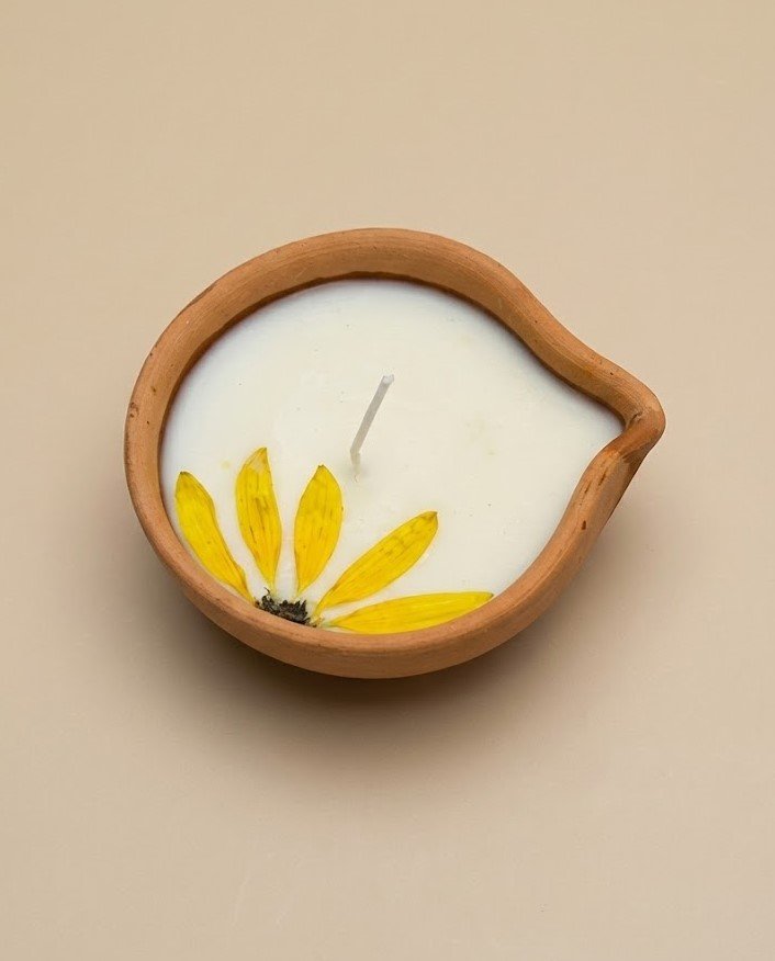 Discover the Sunflower Diya from Lunis Candles. This isn’t just a traditional earthen lamp; it is an experience waiting to unfold. Hand poured into a rustic clay pot and adorned with real pressed floral petals, this candle holds a secret. As the flame dances and the wax pool grows, a personalized hidden message will slowly appear from the depths. It is the ultimate unique gift idea for birthdays, festivals, or simply to say I love you in a memorable way. Perfect for aesthetic home decor lovers who want to add a touch of warmth and intrigue to their living space.